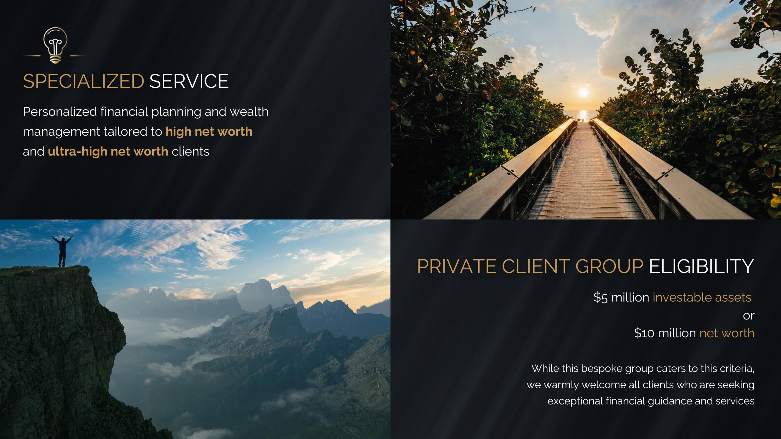 I meet the minimum requirements for the Private Client Group ($5million+ investable assets and/or $10million+ net worth) *